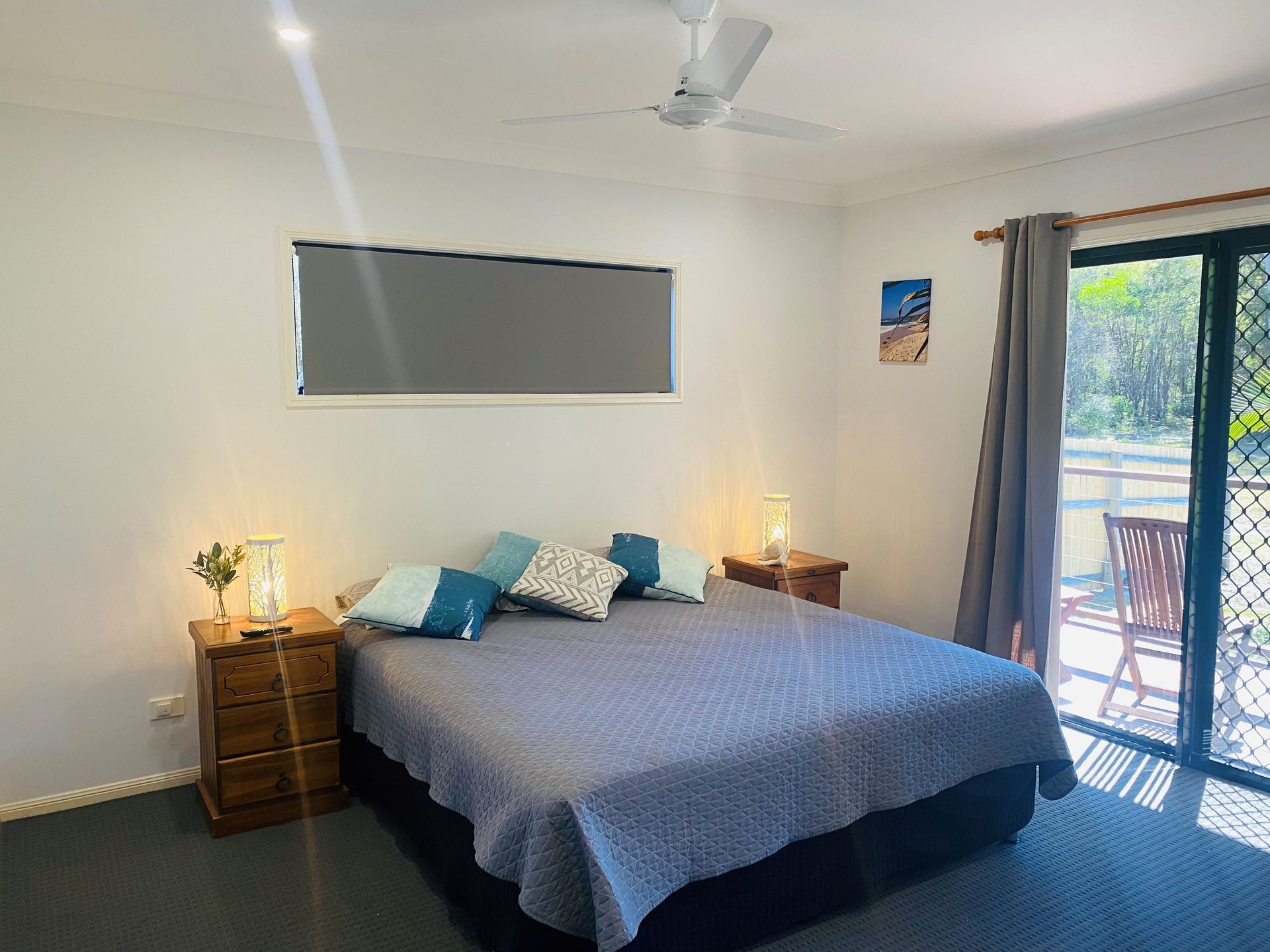 This holiday home is in a quiet location backing onto a reserve, yet still close to the patrolled beach, restaurants and main shopping centre of Rainbow Beach.